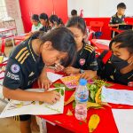 Monday, May 22, 2023, The 5th grade of Angkor Primary School taught science by using leaves to create various images such as ants, crabs, birds and other landscapes.